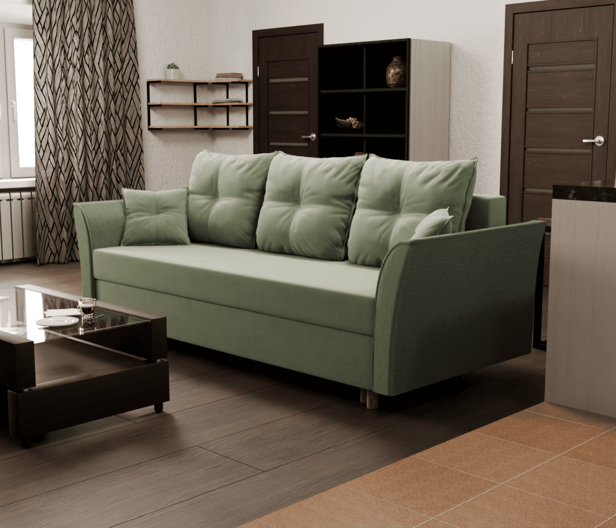 Этот диван-кровать является прекрасным решением для тех, кто ценит комфорт, стиль и универсальность. Изготовленный из прочного велюра, механизм "евро-книжка", что делает его легко трансформируемым и подходящим для любого интерьера. Благодаря съемным подушкам, диван можно легко адаптировать под ваши потребности и обеспечить дополнительное удобство. Его высота, ширина и глубина обеспечивают удобную посадку, а размеры спального места позволяют разместить до 2 человек.