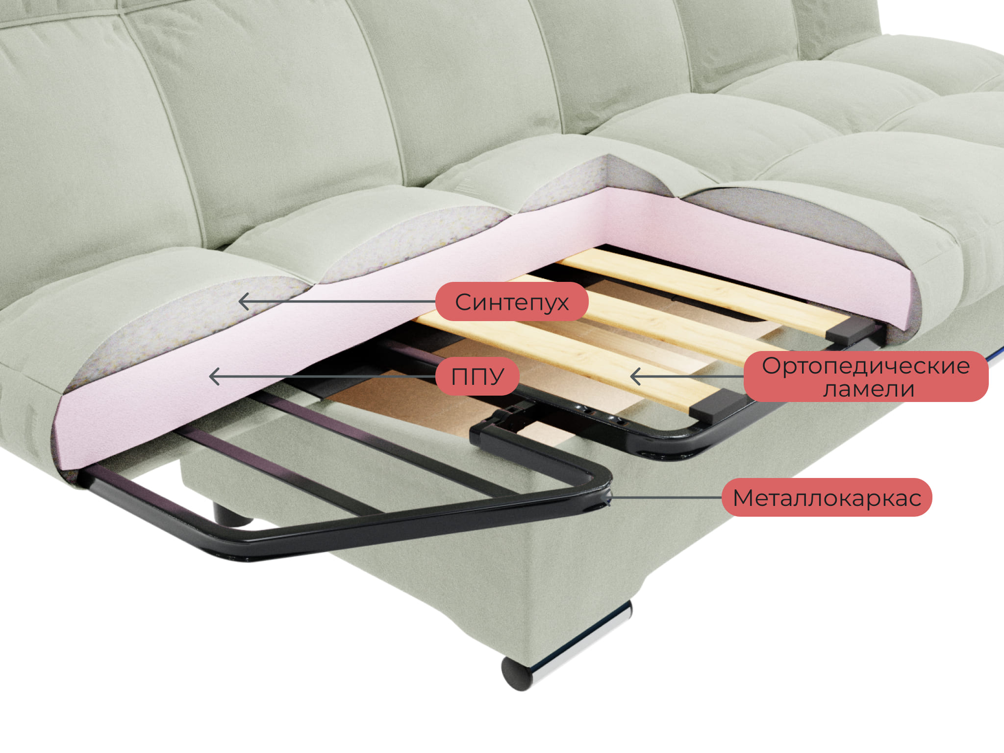Современный и удобный диван-кровать с тремя возможными положениями вместо двух. Он отлично подойдет для современного интерьера и станет прекрасным местом для размещения гостей или друзей. В собранном виде может служить как место для отдыха или сна, а в полностью расправленном – как полноценное спальное место.