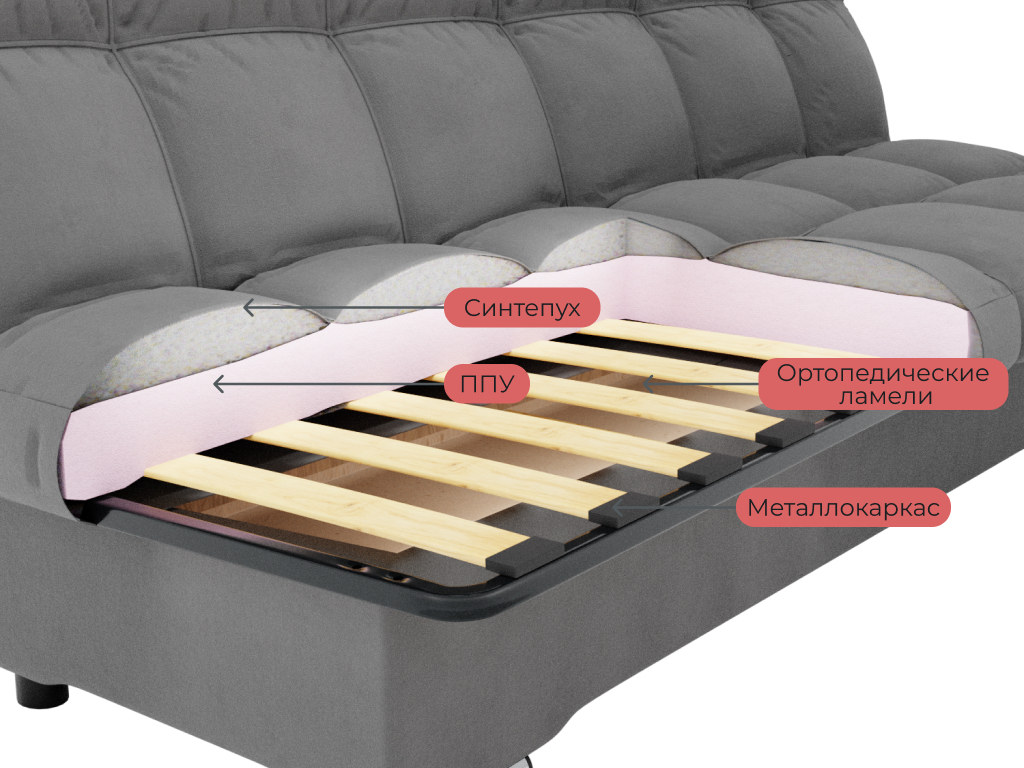 Задняя стенка дивана выполнена из ткани основы;